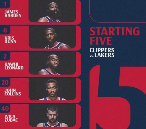 北京时间1月23日,NBA常规赛:快船主场vs湖人,伦纳德本场正式复出。截至本场赛前,湖人26胜16负暂列西部第五,一旦输球将会跌到西部第六。从西部第四到西部第七,四队的胜场差一样。快船19胜24负,排名西部第10。